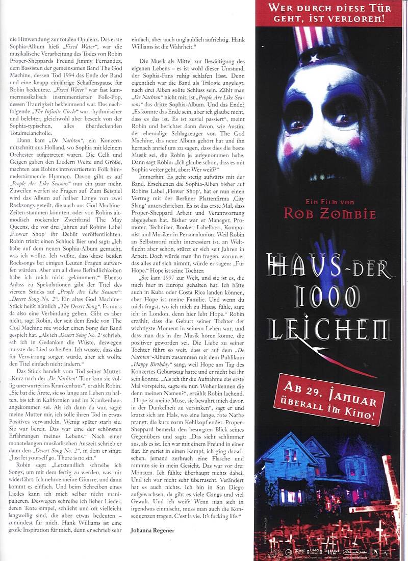 30min Werk der etwas härten Gangart, nette Musik ala "The God Machine", mit "Sophia" Melodien.