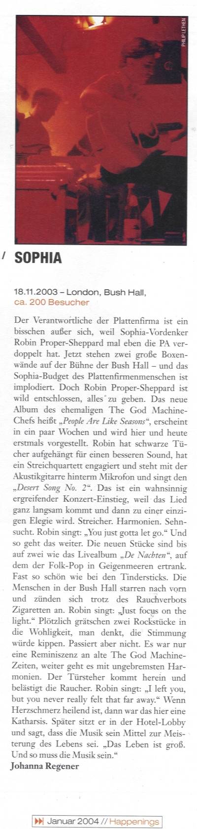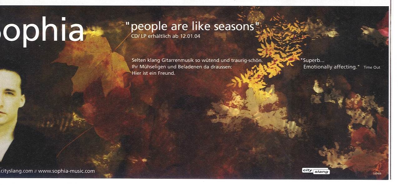 Es tauchten fortan einige "Sophia" Songs auf Samplern auf. Im März 2001 wurde in Belgien im